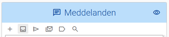 Nya efterlängtade funktioner i meddelande/mailfunktionen i Schoolity har tillkommit. Se symbolerna i det vita fältet under det blå på bilden nedan. De står för ”Inbox”, ”Skickat”, ”Alla meddelanden”, ”Etiketter” och ”Sök” (att söka bland meddelanden). Om ni håller muspekaren på dem så förklaras vad resp symbol står för. Etiketter får vi förklara mer senare.
